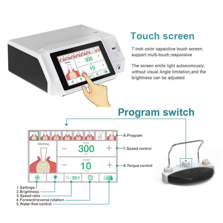Dental Surgical Implant Motor with Large Screen/Touch Panel/LED 20:1 Contra Angle